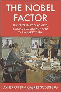 The Nobel Factor: The prize in economics, social democracy and the market turn by Avner Offer and Gabriel Soderberg is quite an interesting read (if for a niche market) but it’s a book of two parts, albeit braided together. One story is about the decline of the solid post-war social democratic consensus in Sweden over the years. The book argues that the creation of the prize by the Swedish central bank was one of the vehicles for ‘the market turn’, which in the UK had the Institute of Economic Affairs and Margaret Thatcher as its institutional vector, and will have had others elsewhere. Perhaps the prize helped the market turn elsewhere. The book concludes: “The existence of a Nobel prize in economics implied that the ‘market turn’ since the 1970s was scientifically grounded, and that it was objectively necessary.”